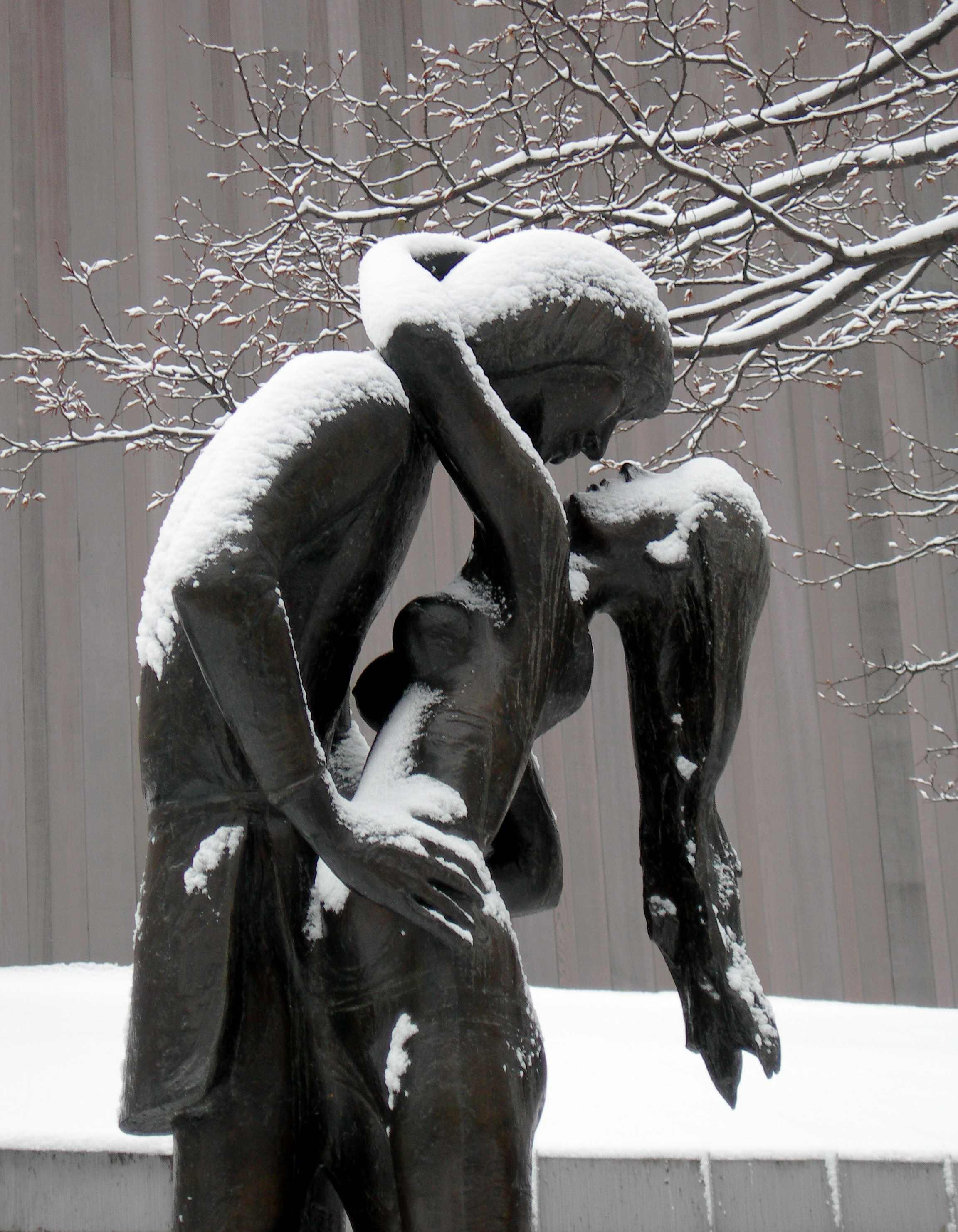 We all know that our Bench in Central Park is so appropriately placed near the the Romeo and Juliet statue just across the path, outside the Delacorte Theater. Can't you imagine Vincent strolling along that path, after the statue was unveiled in 1977, looking at it, and sighing? Patience, Vincent... just a little decade to wait. Here is the immortal lovers' winter way to celebrate Vincent's birthday. |