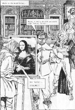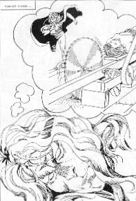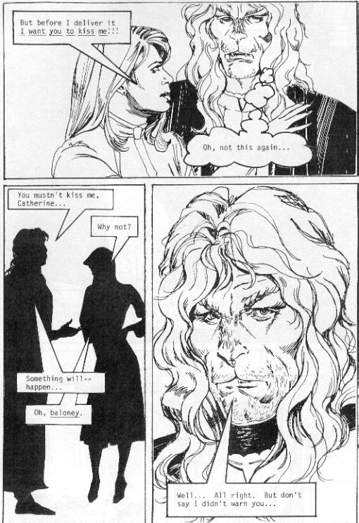 Any attempt to sum up one of PS Nim's humorous graphic novels would be doomed from the start! They're way too full of twists and turns, every page loaded with hilarious details, for any summary to ever do them justice. Let's just say that this one is about (among other things) Catherine dreaming of a home-sweet-home life with Vincent, and taking bread-baking classes with a teacher whom she finds vaguely familiar (well, she should, it's Paracelsus!). She leaves her dough unattended while she gets mugged going to Vincent, and he gets lost rescuing her. The dough grows and grows and threatens to engulf the whole city. Vincent could "roar it down"... but he's got laryngitis, and... well, anyway, here are a few chosen pages for you to enjoy!