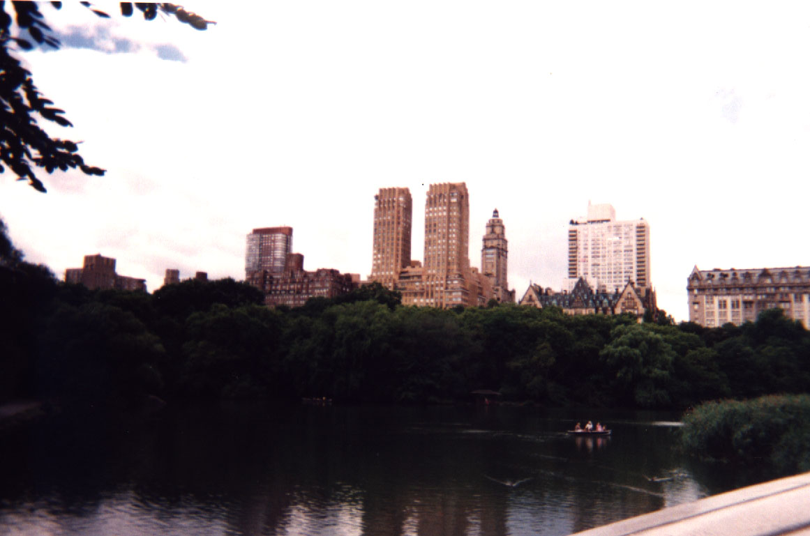 Central Park. Arrêt photos. De là on voit le lac, les arbres, et au fond, les